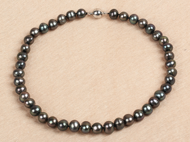 These authentic pearls possess a natural ebony hue, blending timeless sophistication with effortless versatility. Presented in an elegant gift pouch, this singular piece is available for immediate dispatch. A rare opportunity for the discerning collector.