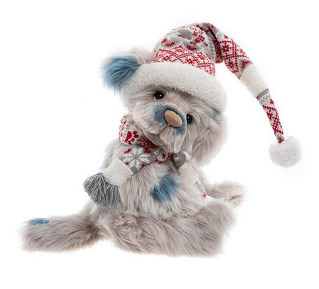 Meet Puddletown, a heart-melting little pup made from unbelievably soft plush. His fluffy grey coat, touched with hints of blue, gives him a uniquely lovable look that stands. Ready for frosty days, he’s bundled in a cheerful red, white, and grey knitted hat with a matching scarf that adds to his winter charm. Fully jointed and carefully hand-finished, Puddletown shows off finely detailed paw pads that speak to his exceptional craftsmanship. And, of course, his adorable “Who, me?” expression is the finishing touch that makes him utterly irresistible. Suitable for ages 3 years+. Puppy height: 38cm/15”/12.7 Bear Paws.