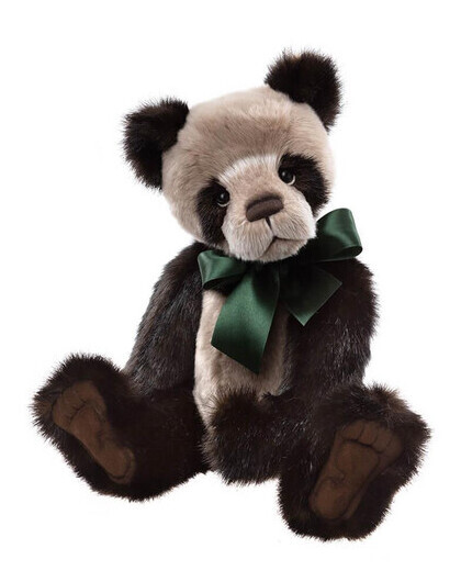 Meet Botwood, a delightfully soft panda featuring a luxurious blend of dark brown, black and beige fur, paw-fectly complemented by a beautiful green ribbon tied neatly around his neck. His sculptured paw pads and delicately hand-embroidered nose are just some of the examples of the expert love and care placed into his creation. With his gentle expression and cuddly design, Botwood is ready to bring comfort and joy wherever he goes, he simply can’t wait to snuggle up with you! Suitable for ages 3 years+. Panda height: 43cm/17"/14.3 Bear Paws.