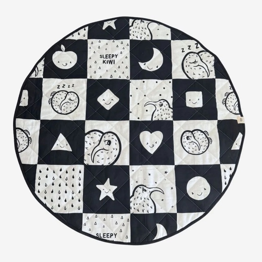 Crafted from beautifully soft quilted cotton, our Sleepy Kiwi playmat offers a safe and cozy space for tummy time adventures. Generously sized at 1 metre for growing babies and active moments.