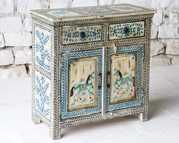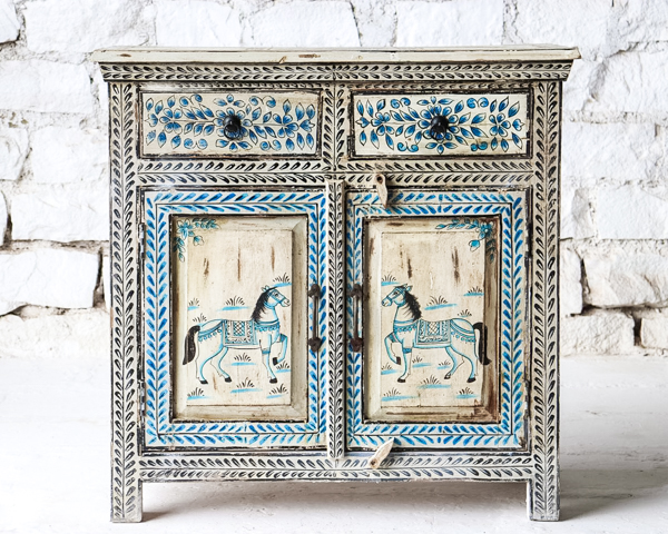 A fun super ethnic 2 door & 2 drawer sideboard made from reclaimed timber and has been hand painted in a tradition Indian style♥️