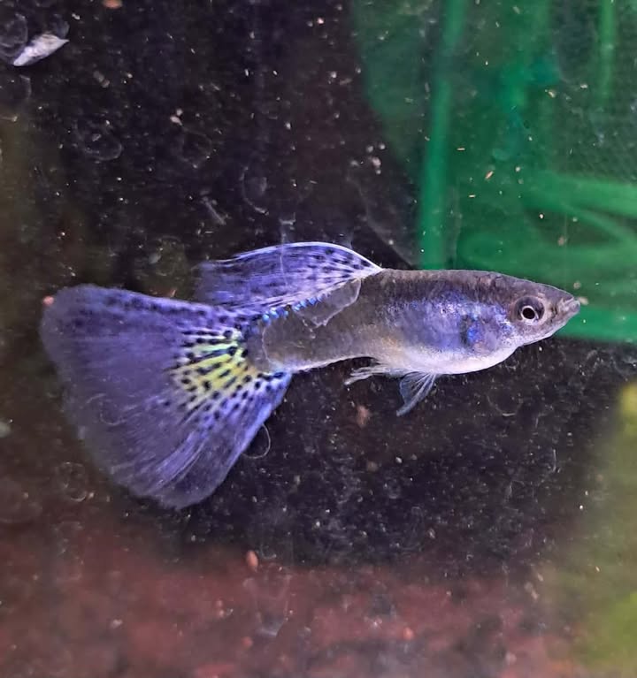 Trio of Blue Metal Grass Trio guppies. 1 male 2 females.