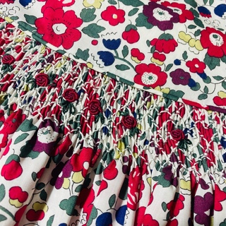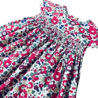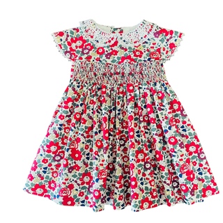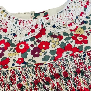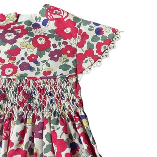 Highest quality Liberty Tana Lawn, featuring cap sleeves with vintage trim and additional floral embroidery. Note 12-18m features vintage lace collar