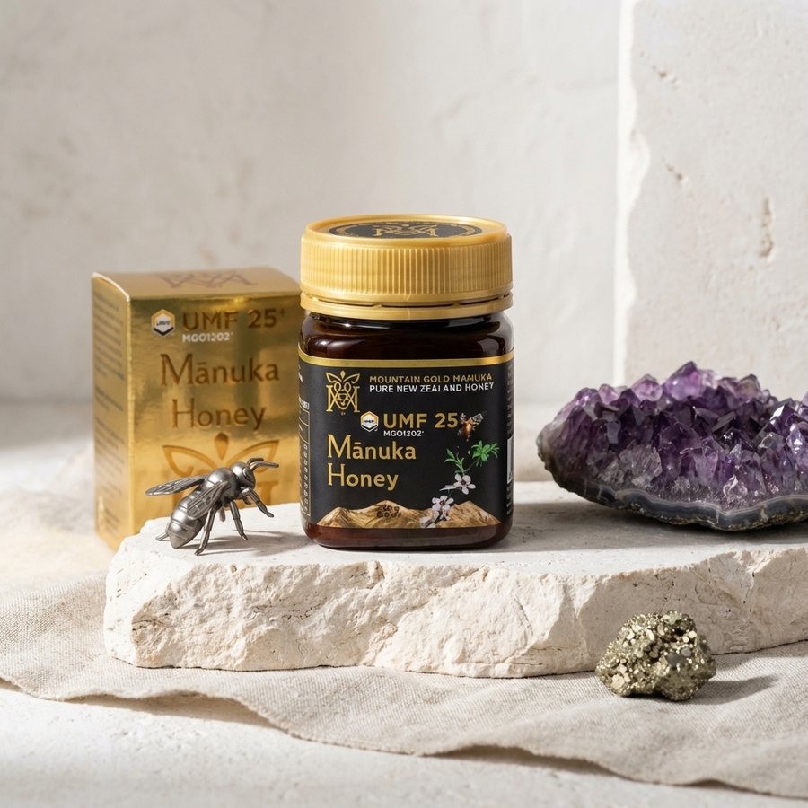 Command an extended supply of nature's most potent grade. This 250g jar of Mountain Gold UMF™ 25+ is a substantial reserve, offering a meaningful quantity of our rarest and most powerful honey. Achieving the elite UMF™ 25+ certification demands perfect conditions, resulting in a honey with an extraordinarily high concentration of signature compounds. Designed for the committed connoisseur or practitioner, this larger format ensures a lasting supply of this unparalleled natural resource for sustained, high-potency rituals.