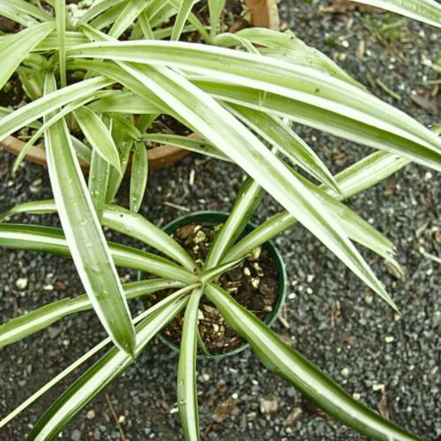 Check out the difference! While most people are used to the common Spider Plant with a white stripe down the middle, this 'Variegatum' variety flips the script.