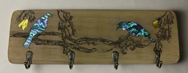 Inlaid with shimmering New Zealand pāua shell