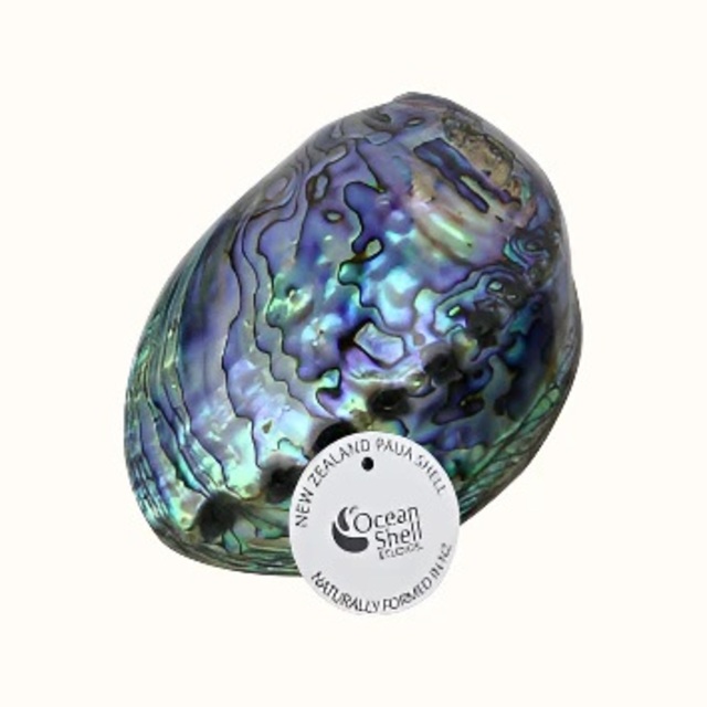 New Zealand pāua (Haliotis iris) is considered the most colourful abalone shell in the world. It symbolises purity and prosperity and is often used in Māori art, jewellery, and carvings. Sustainably hand-harvested and polished to perfection, this is a natural treasure from Aotearoa’s ocean.