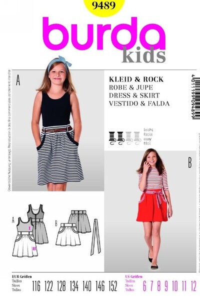 Gathered skirt with broad waistband and intriguing banded hip yoke pockets. Dress: same seam lines and jersey bodice attached at the waist.