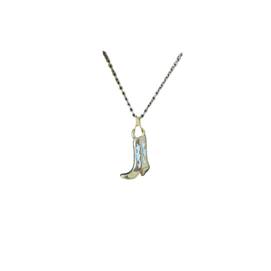 The Cassie Necklace is a cute gold cowboy boot style necklace available in three different inner colors.