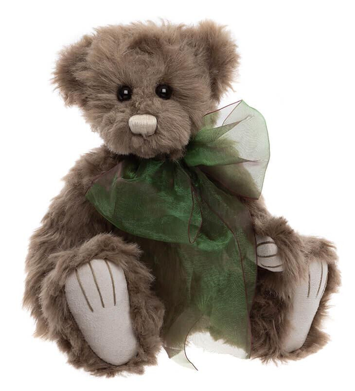 Meet Mr Baggins, a small bear with a world of wonder in his heart. This charming traveller is made from irresistibly soft, grey-brown plush that invites every hug. His neatly trimmed muzzle frames a hand-stitched light-grey nose, while his deep, soulful eyes seem to hold stories from far-off lands. With pale grey paw pads complete with tickly toe detailing. Around his neck he wears a green organza bow.