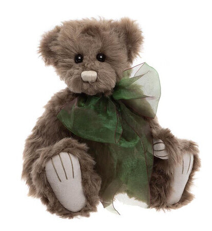 Meet Mr Baggins, a small bear with a world of wonder in his heart. This charming traveller is made from irresistibly soft, grey-brown plush that invites every hug. His neatly trimmed muzzle frames a hand-stitched light-grey nose, while his deep, soulful eyes seem to hold stories from far-off lands. With pale grey paw pads complete with tickly toe detailing. Around his neck he wears a green organza bow.