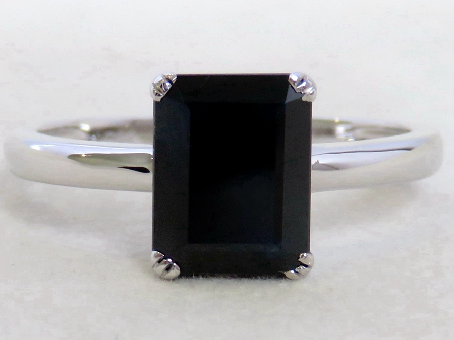Natural Black Sapphire: 9mm x 7mm, emerald cut, 2.9ct