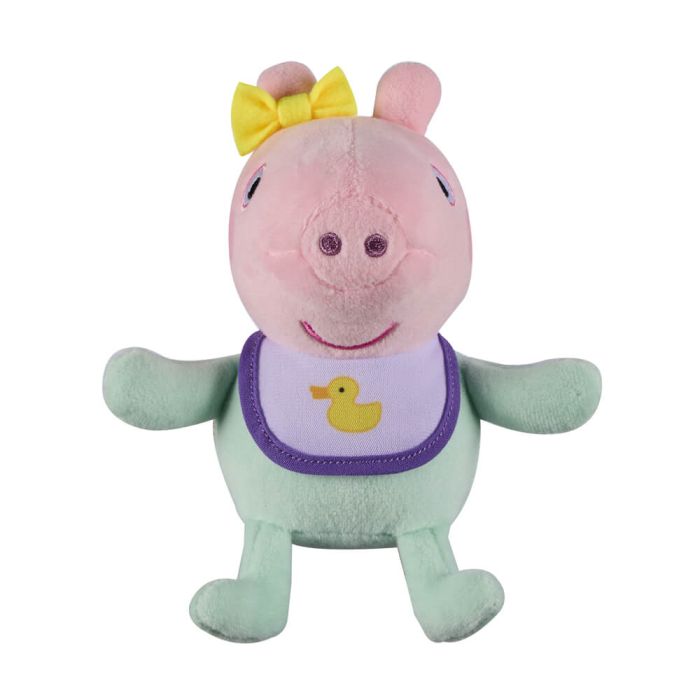 Super soft Baby Evie. Cute and cuddly, she's the perfect size for young Peppa Pig fans to take with them when out and about.