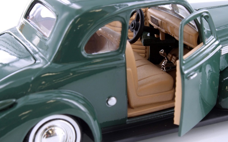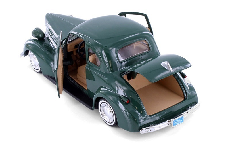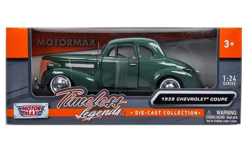 Chevrolet Master Deluxe Coupe. Classic beauty with rounded body features, smooth lines, and chrome accents, all influenced by the Art Deco style of the time. Low profile white-wall tyres and chromed engine suggest that this baby has been treated to some after-market pampering. Part of the Motormax Timeless Legends collection. Diecast metal with some plastic parts. Opening doors, bonnet, and boot. Interior and engine bay detail, which is pretty good for a model in this price range. Approx. 19.5cm x 7.5cm (7.75” x 3”).