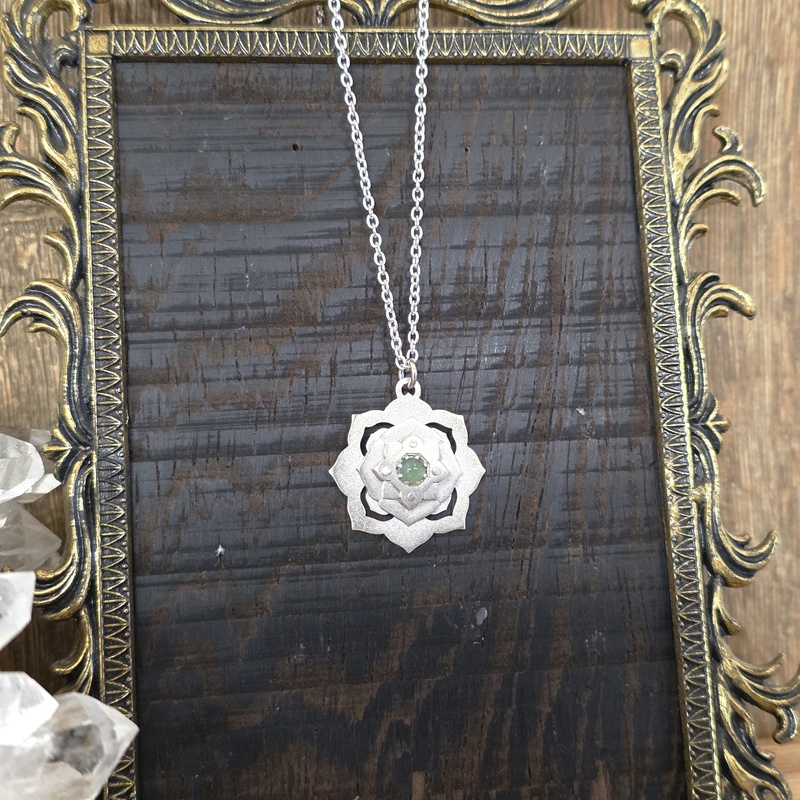 made from silver and prehnite center
