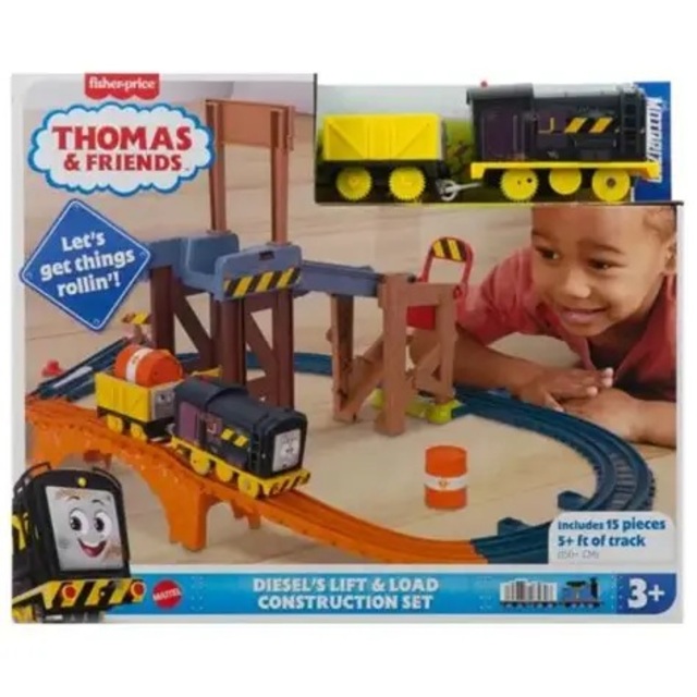 Preschoolers can enjoy construction-themed railway fun with the Diesel’s Lift & Load Construction Set from Fisher-Price.