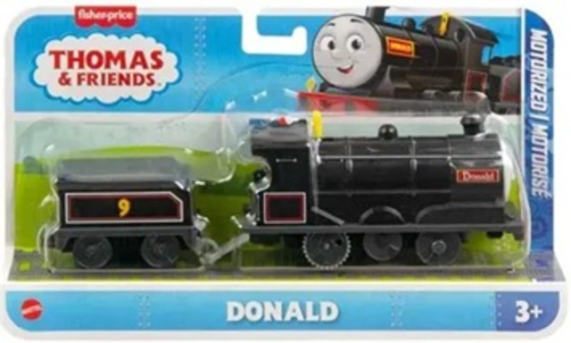Styled like Donald from Thomas & Friends: All Engines Go!, this battery-powered engine speeds along Thomas & Friends™ tracks (except wood) with a simple flip of the switch. Plastic connectors let kids attach other engines, vehicles, cargo cars, or tenders for bigger railway adventures.