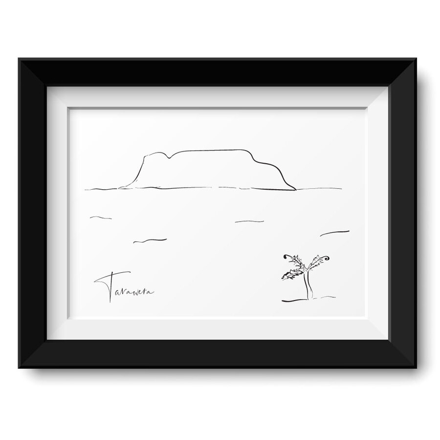 Rediscover the majestic simplicity of Aotearoa with our Tarawera Line Art Print - a hand-drawn digitised black‑and‑white line drawing capturing the iconic outline of Mount Tarawera standing serene over Rotorua’s landscape. (Pictured: A2, Black Frame with Mat Board)