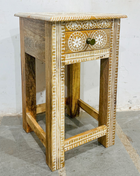 A wonderful bohemian style bedside table with beautiful detailing.