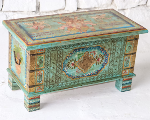 A fun super ethnic blanket box made from reclaimed timber and has been hand painted in a tradition Indian style♥️