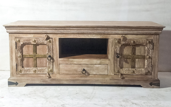 An awesome rustic sideboard beautifully handcrafted from reclaimed timber with brass detailing on the doors.