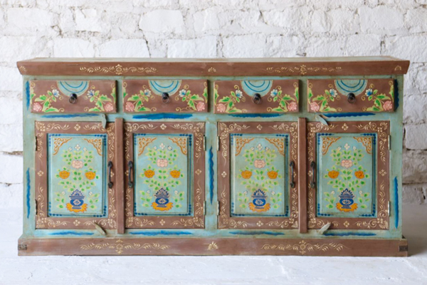 A fun super ethnic 4 door & 4 drawer sideboard made from reclaimed timber and has been hand painted in a tradition Indian style♥️