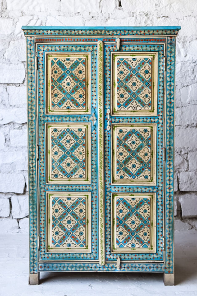 A fun super ethnic tallboy made from reclaimed timber and has been hand painted in a tradition Indian style♥️