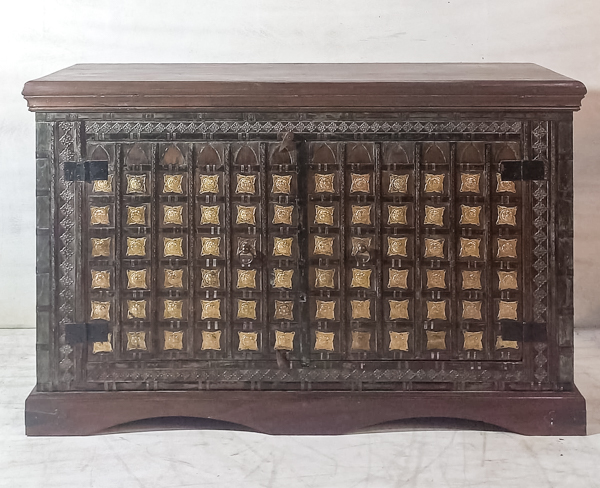 Awesome handcrafted old storage pittarah made from teak with tin & brass detailing on 2 doors. Loads of character!!