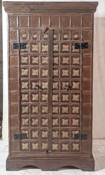 This is a one-of-a-kind rustic style antique storage cabinet handcrafted in India from solid teak. This beauty features two doors with metal and brass detailing, delivering authentic vintage character and artisan craftsmanship. Approximately 60–80 years old, it’s an ideal rustic teak cupboard for hallway, bedroom, or living room storage. Perfect for lovers of antique Indian furniture, reclaimed timber style, and unique handcrafted statement pieces for the home.