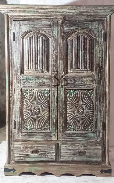 A stunning vintage teak cabinet, handcrafted in India and estimated to be 60–80 years old this tallboy offers practical storage with authentic aged charm. Rich teak grain, timeworn patina, and unique imperfections give it standout character, making it ideal as a bedroom tallboy, entryway storage cabinet, or statement piece in a rustic, boho, or traditional home. A timeless piece of Indian antique furniture for collectors and interior stylists.