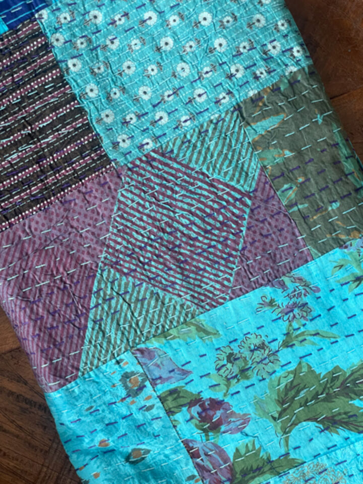 These stunning kanthas are a thin, double sided 100% Indian cotton quilt hand crafted in Rajasthan.