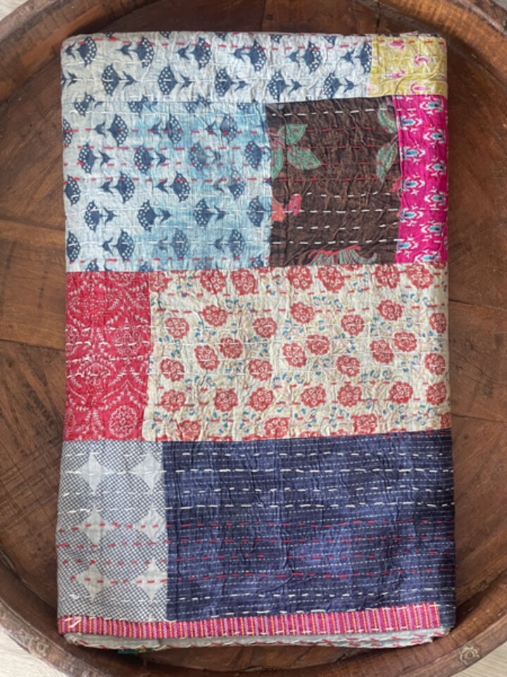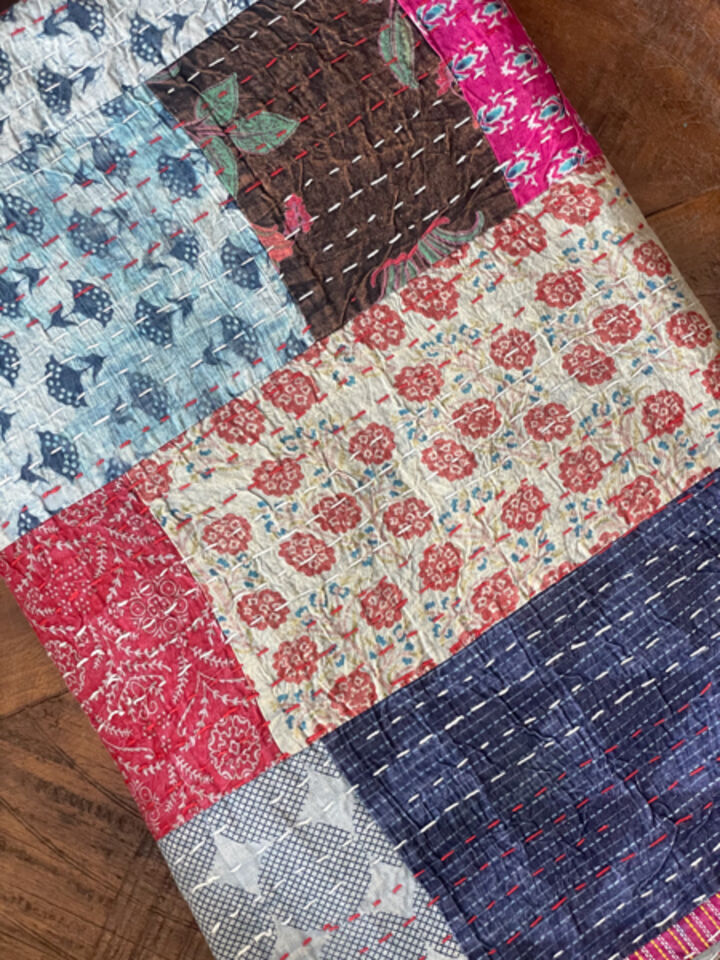 These stunning kanthas are a thin, double sided 100% Indian cotton quilt hand crafted in Rajasthan.