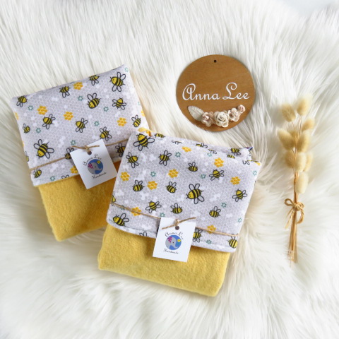 Wrap your little one in the Baby Blanket - Yellow Bees from Anna Lee Handmade, a cute, cosy, baby blanket crafted from wool (repurposed blanket) and cotton — warm, breathable, and gentle for everyday comfort. Measuring approx 50 x 75cm, it’s an ideal New Zealand handmade accessory for on-the-go naps and outings.