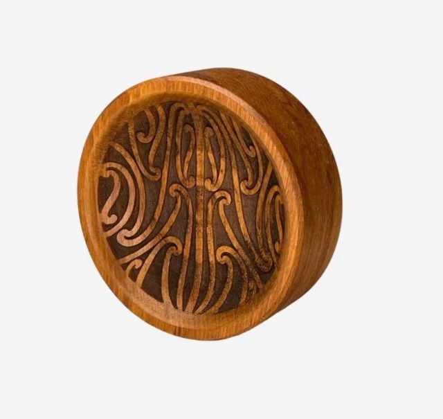 This recycled native NZ timber ring dish features an engraved design inspired by the traditional pūhoro pattern that adorns waka (canoes) and is often seen in Ta Moko.