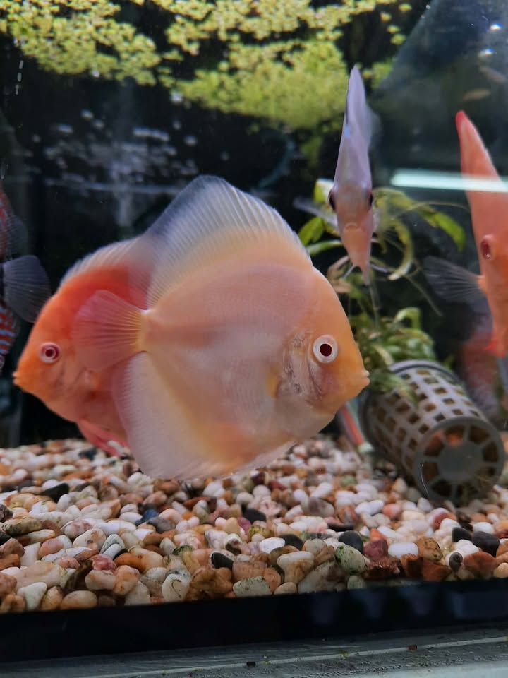Discus like to be in groups of at least 5. The reccomended tank size is 250L+. Discus can get up to 18cm (6-8 inches)