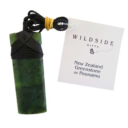 Beautiful New Zealand greenstone Toki about 73mm long with black waxed adjustable chord binding.