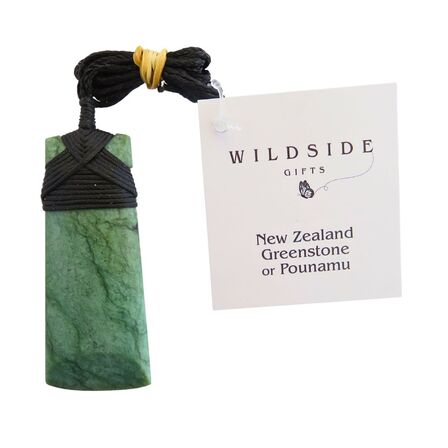 Beautiful New Zealand Greenstone Toki about 68mm long with black waxed chord that is adjustable.