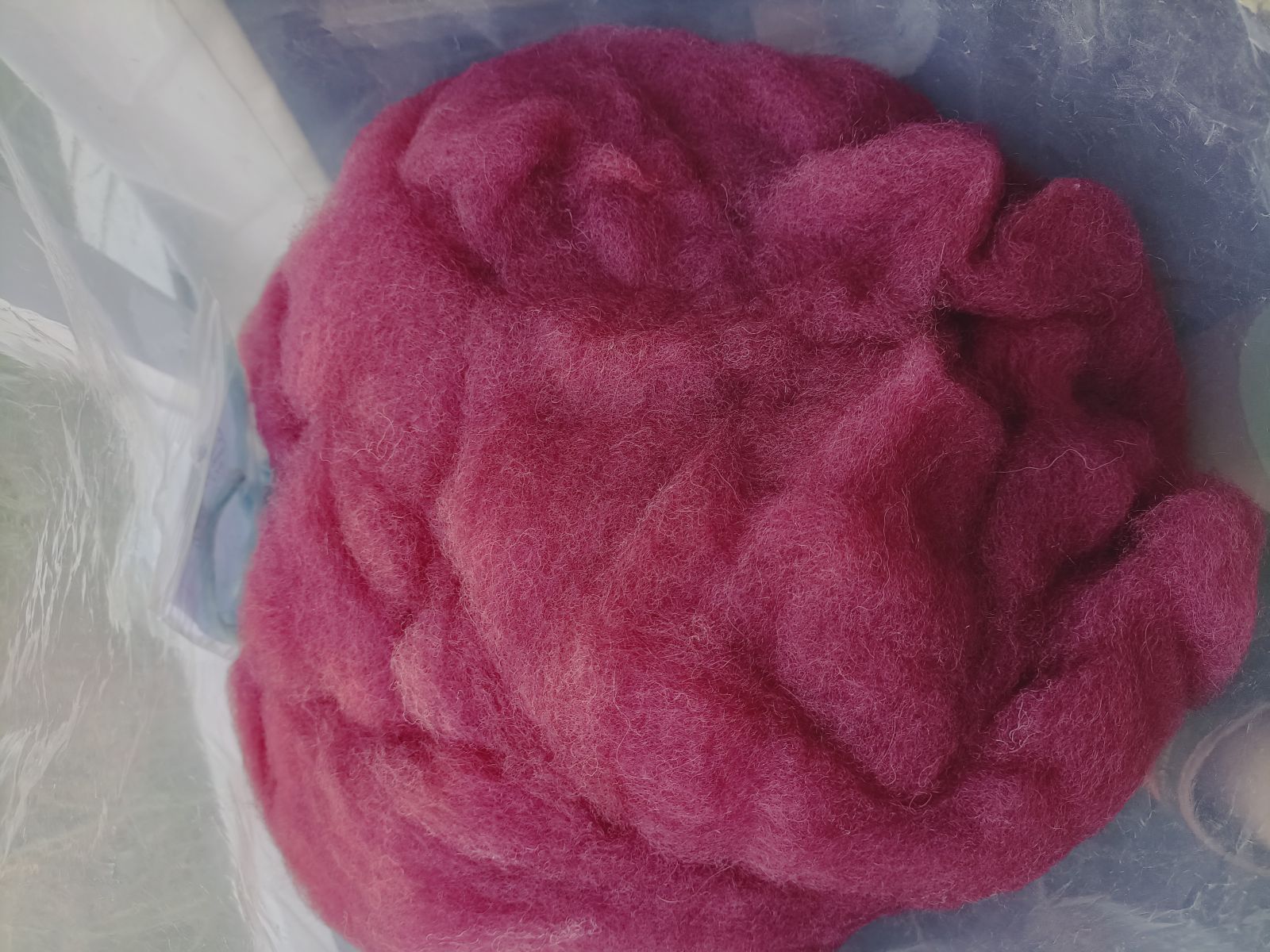 Carded alpaca fibre hand dyed by me. 100g The photo does not truly depict the dark rich maroon, try as I might to get a decent photo. See the second photo which is a closeup of the maroon dyed yarn which is a much better colour likeness