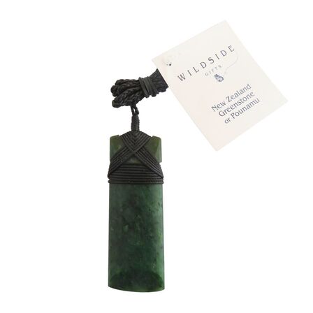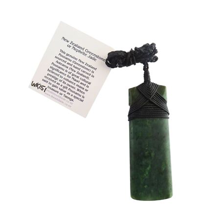 A beautiful, heavy, dark green New Zealand Greenstone Toki about 80mm long by 30mm wide bound with an adjustable waxed black chord. Carved in Taranaki, New Zealand.